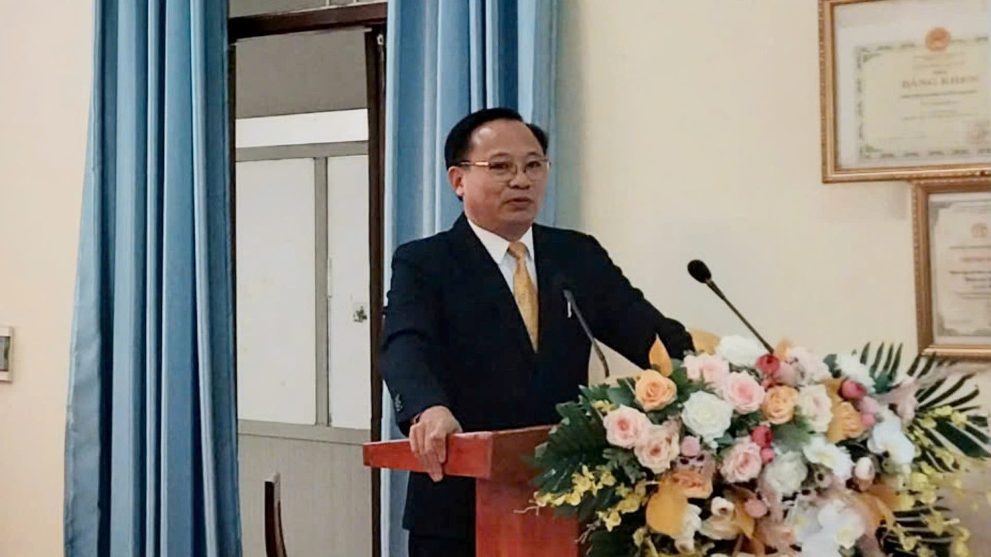 Đồng chí TS. BS Đoàn Thịnh Trường - Giám đốc Bệnh viện đa khoa huyện báo cáo kết quả bệnh viện đạt được trong năm 2024