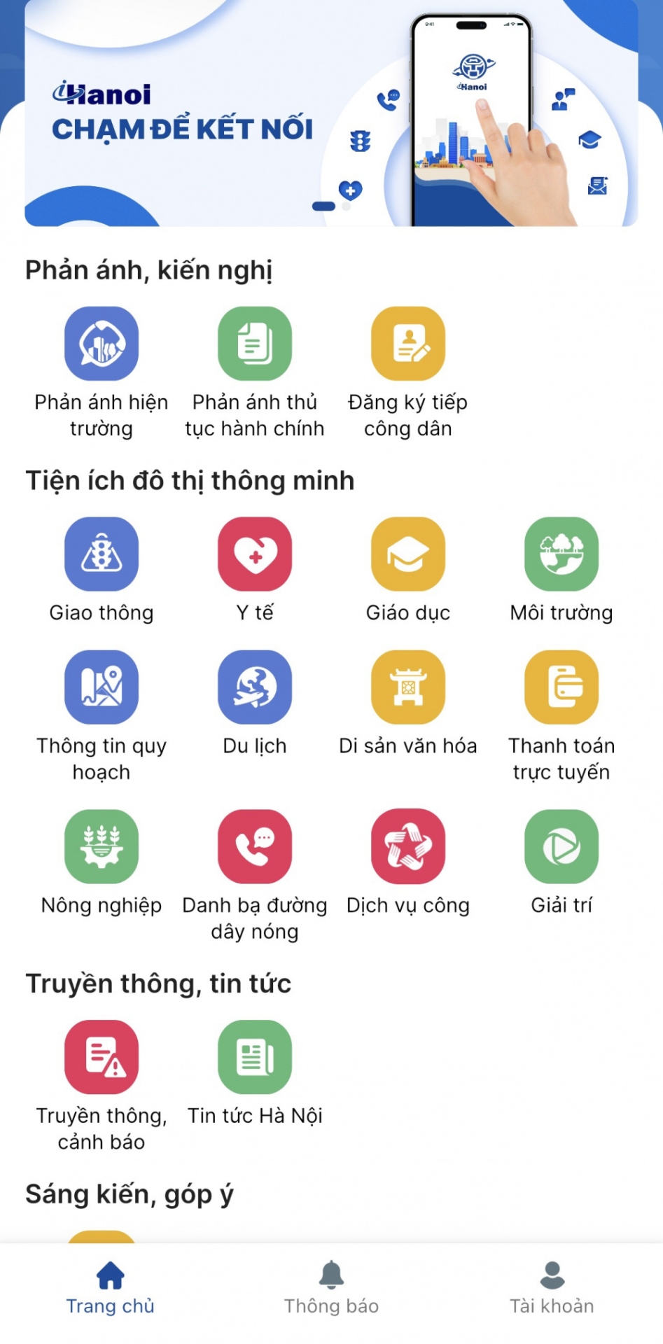 Nhóm 4 - Sáng kiến, góp ý: Hỗ trợ người dân gửi ý tưởng, sáng kiến đóng góp cho việc phát triển Thủ đô. Bên cạnh đó, ứng dụng iHanoi còn có tính năng Hanoi Chat - cung cấp trò chuyện trực tuyến, giúp người dân tương tác với nhau, các doanh nghiệp và cơ quan chính quyền. Người dùng có thể trò chuyện 1:1, tạo nhóm trò chuyện, gọi video call, chia sẻ hình ảnh, file, danh thiếp, vị trí hiện tại Trong thời gian tới, TP. Hà Nội sẽ tiếp tục nâng cấp nền tảng, ứng dụng iHaNoi sẽ tiếp tục được hoàn thiện, bổ sung các tiện ích cung cấp tới người dân như: Khảo sát ý kiến người dân; Tra cứu điểm đỗ xe; Đặt chỗ đỗ xe trước & thanh toán trực tuyến phí đỗ xe; tra cứu các tuyến xe buýt; sổ liên lạc điện tử; tra cứu tuyển sinh đầu cấp; thanh toán tiền điện; nạp tiền điện thoại… UBND thành phố Hà Nội kỳ vọng iHanoi sẽ là nền tảng công dân số uy tín, đáng tin cậy và chất lượng dành cho người dân, không chỉ dành riêng cho người dân Thủ Đô, mà còn dành cho những người dân ở tỉnh thành khác, những du khách trong nước và nước ngoài quan tâm, muốn tìm hiểu về Hà Nội.
