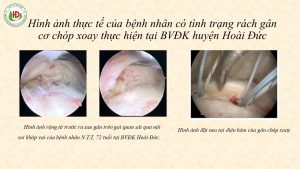 trong hoạt động hay sinh hoạt hàng ngày, đây là tình trạng tổn thương dễ gặp ở những người hoạt động cánh tay cường độ mạnh hoặc hay vươn, rướn cao hoặc chấn thương. Nếu bệnh nhân được chẩn đoán sớm và điều trị kịp thời thì có thể điều trị dứt điểm, tuy nhiên trường hợp đến muộn có thể ảnh hưởng đến chức năng khớp vai. Sau khi được BSCKI. Đỗ Công Thiện trưởng khoa Ngoại tư vấn và được sự tin tưởng của gia đình bệnh nhân, bác sĩ tại bệnh viện đã phối hợp với tuyến trên tiến hành hoàn thiện các thủ tục cần thiết và thực hiện ca mổ ngay tại Bệnh viện ĐK H.Hoài Đức. Bệnh nhân đã được phẫu thuật nội soi tại Bệnh viện Đa Khoa huyện Hoài Đức=> đây là một kỹ thuật khó đòi hỏi sự chính xác cao và tỉ mỉ, với kinh nghiệm nhiều năm trong phẫu thuật chấn thương và sự khéo léo ca phẫu thuật diễn ra thành công. Việc sử dụng các phương tiện máy móc tiến tiến hiện đại kết hợp với tay nghề cao của bác sĩ đã giúp bệnh nhân trải qua một cuộc mổ nhẹ nhàng và thành công.