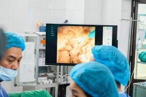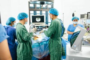 Bệnh nhân nam 64T có tiền sử sỏi thận, sỏi niệu quản. Bệnh nhân đã được chỉ định can thiệp 2 lần bằng phương pháp tán sỏi ngược dòng và nội soi qua phúc mạc tại các bệnh viện có tiếng trên địa bàn Hà Nội. Tuy nhiên, gần đây bệnh nhân thường xuyên đau bụng, tiểu ra máu, bệnh nhân đến khám tại BV Đa khoa huyện Hoài Đức, bác sĩ đã siêu âm và thực hiện các chẩn đoán lâm sàng phát hiện hình ảnh sỏi bên thận trái kích thước 51mm, Sáng ngày 6/1/2024 bệnh nhân được đưa lên phòng mổ gây mê và phẫu thuật. Ca phẫu thuật được thực hiện bởi PGS.TS.Đốc Trường Thành – Trưởng khoa Phẫu thuật Tiết niệu bệnh viện Việt Đức cùng với e kip các bác sĩ Khoa Ngoại – bệnh viện ĐK huyện Hoài Đức.Chuyên gia gây tê Tuỷ sống cho Bệnh nhân, Rạch 1 vết nhỏ khoảng 5mm ở vùng lưng để tạo 1 đường hầm nhỏ từ bên ngoài da vào trong thận. Sau đó nội soi qua đường hầm nhỏ để tiếp cận vị trí có sỏi. Sau khi xác định chính xác vị trí có sỏi bác sĩ đã sử dụng máy Laser Dornier Thulio để tán. Sỏi được tán nhỏ, mịn và hút ra ngoài dễ dàng và nhanh chóng qua đường hầm. Trong vòng 45 phút phẫu thuật cùng PGS Đỗ Trường Thành và ekip bác sĩ chuyên môn cao của bệnh viện đa khoa huyện Hoài Đức. Ca tán sỏi được thành công hơn mong đợi, bệnh nhân phục hồi nhanh chóng và xuất viện chỉ sau 3 ngày nằm viện. Dưới đây là một số hình ảnh được thực hiện tại BVĐK huyện Hoài Đức